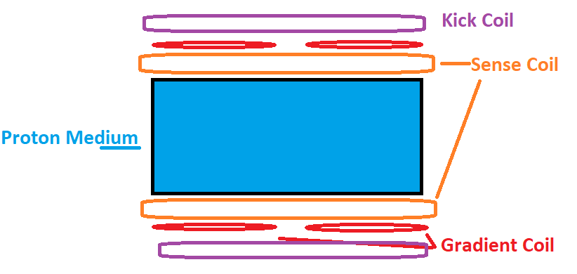 The kick is accomplished with a polarizing coil that quickly energizes and then dissipates to disorient the protons within the medium.