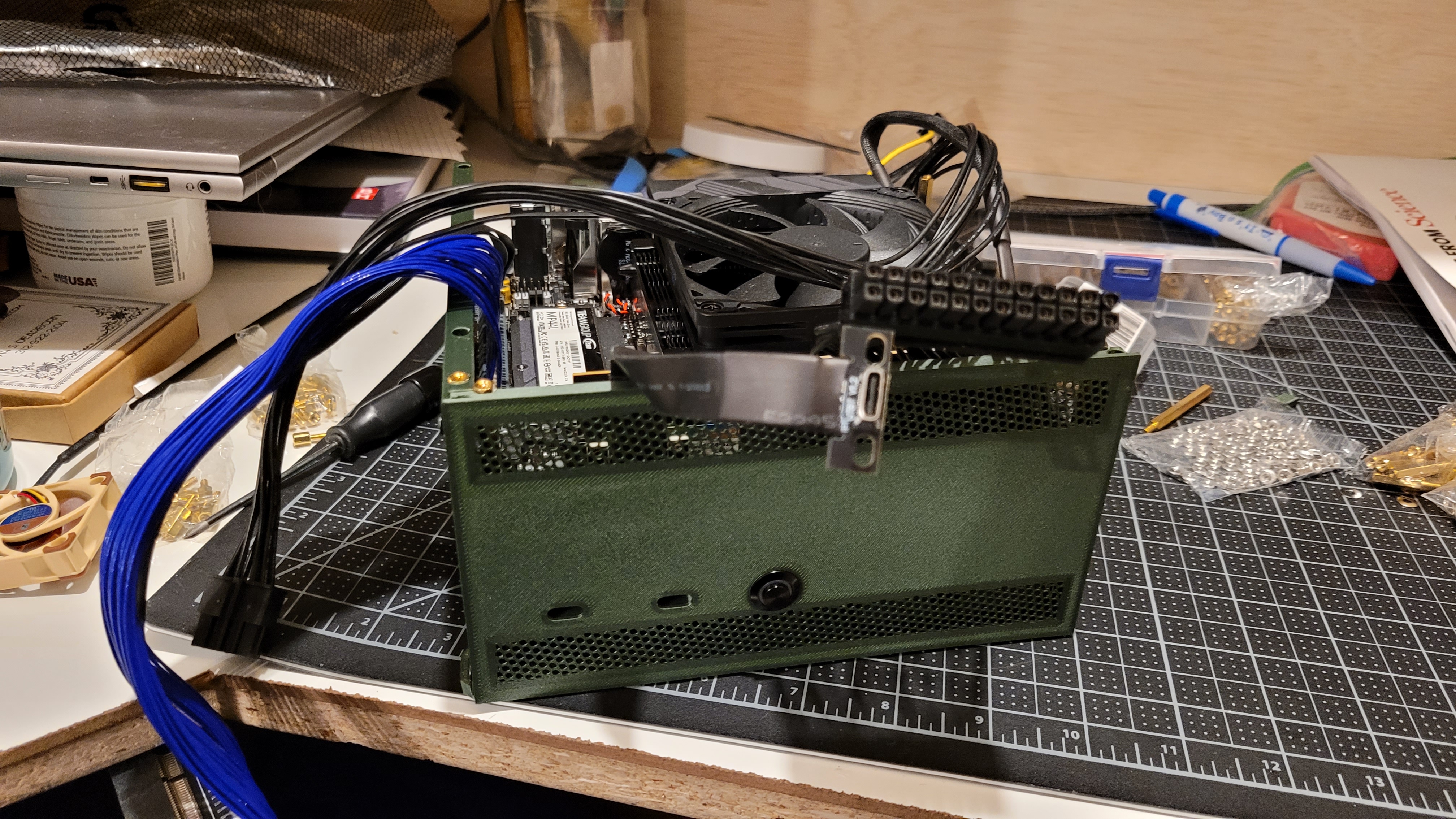 Packing high performance components into a tight form factor is a recipe for thermal throttling, so I wanted to select components that were efficient not only in volume, but also in performance per TDP (thermal dissipation power). The AMD Ryzen 5 7600 has a TDP of 65W and the RTX4060 has a TDP of 115W. Which honestly is an amazing thermal performance value. I also plan to slight undervolt both to help reduce the thermal load.