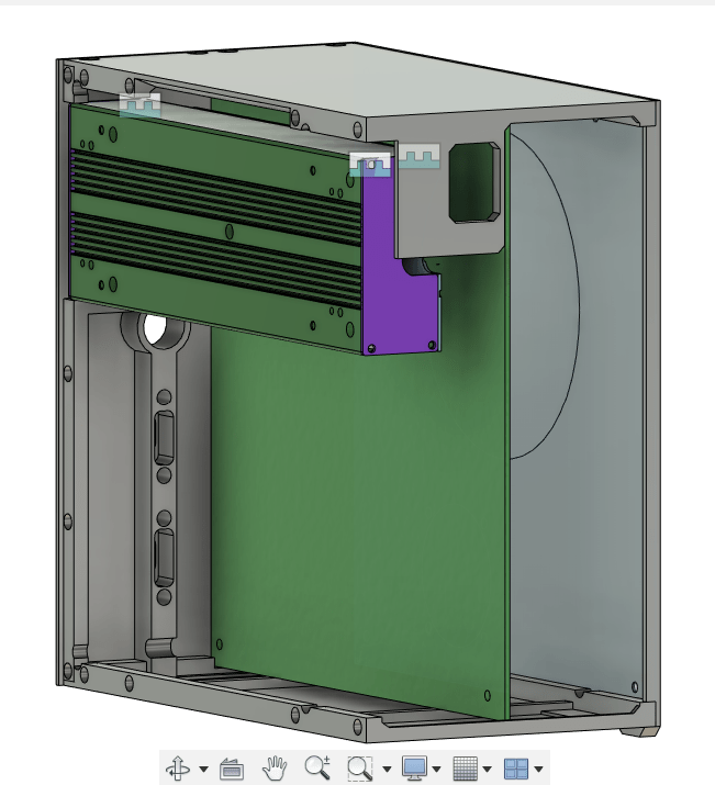 Unlike sandwich cases you can buy I purposefully didn’t design mine with a spine. For cases that included a spine the idea was that you would mount your motherboard to this metal framework and it would be the primary load carrying path. However adding a spine and its associated mounting features eats into precious cubic mm’s so I reasoned I could do without it if I made my primary load bath the motherboard itself. Compared to the stamped sheet metal spine, the fiberglass PCB, CPU/VRAM backing plate is just as stiff, if not stiffer given its thickness and framework.