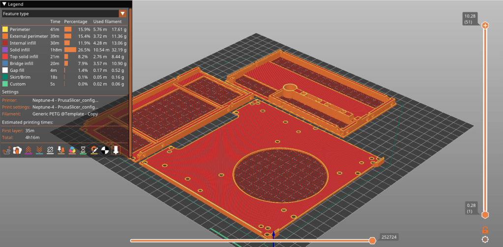 When did my first cad design I modeled the vents for the air flow. I learned however that I could utilize Prusa’s slicer’s own functionality to create much better designs quicker than directly modeling them. Instead I included a light outline of where I wanted to vents to be placed so that in the slicer I could align a modifier.